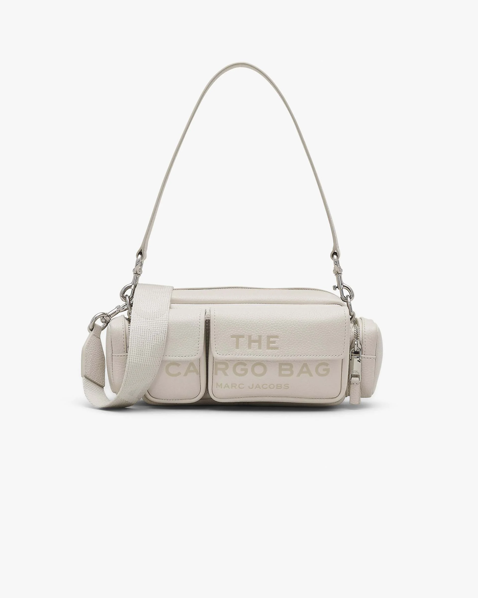 Inspired by the Spring '23 runway, the Leather Cargo Bag is a sleek carryall that's quintessentially Marc. Special detailing includes our signature embossed branding and plenty of pockets to carry your small necessities. Style as a shoulder bag, a clutch, or wear as a crossbody with the removable, adjustable webbing strap. 2S4HSH085H02 FEATURES Full grain leather Top zip closure Removable and adjustable webbing strap; removable leather shoulder strap 2 zip pockets, 2 magnetic pocket Dust bag included DIMENSIONS 9in L x 3in D x 5in H 22cm L x 7cm D x 12cm H Strap 57in L x 2in D (144cm L x 4cm D)