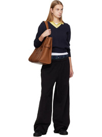 Pebble-grained leather tote. · Fixed rolled shoulder straps · Text and logo embossed at face · Loop at side · Logo patch at back face · Bumper pads at base · Zip closure · Zip pocket at interior · Twill lining · H13" x W17" x D6" Part of THE™ collection. Supplier color: Argan oil Leather. Made in Viet Nam 261190F049012