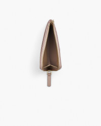 Look familiar? This leather wallet is designed with the same bold branding as our bestselling tote. Securing with a zip-around closure, it includes four card slots, two interior slip pockets, and a dog clip chain that can be used to hold your keys. For a perfect Marc match, complete the set with one of our signature leather bags. 2S4SMP010S02 FEATURES Full grain leather Top zip closure 4 card slots, 2 slip pockets, 1 internal dog clip Twill lining Dust bag included DIMENSIONS 5in L x 1in D x 3in H 13cm L x 2cm D x 8cm H