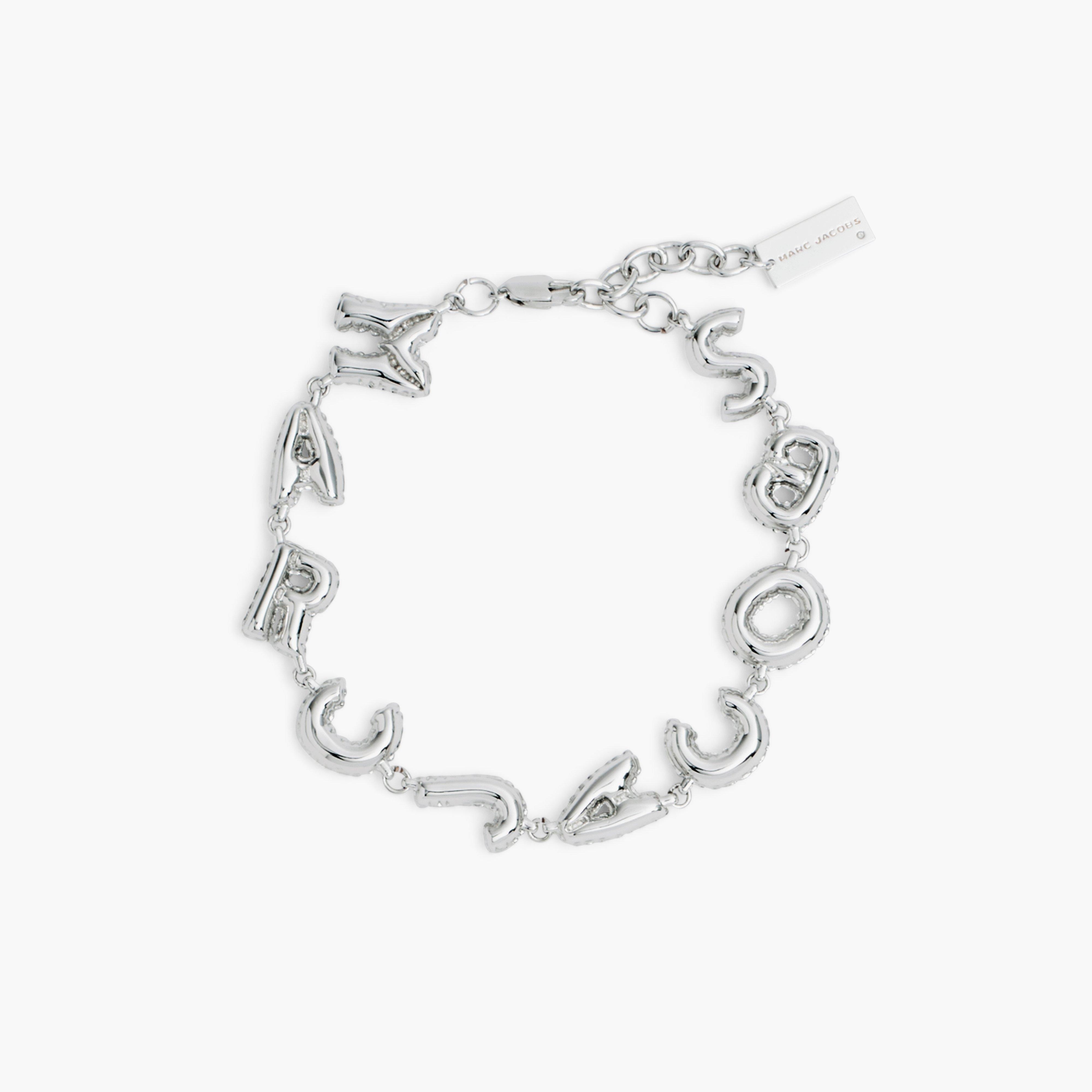 A new Marc Jacobs icon. This playful bracelet amps up the inflated shapes of the season with a mylar balloon-inspired logo design. 2F3JBR001J59 FEATURES Silver-Plated Brass Lobster clasp Shipped in our Smiley Yellow gift box with custom monogram dust bag DIMENSIONS Base Length: 19cm Extender: 5cm