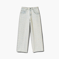 Expert craftsmanship elevates this 5 pocket jean engineered for a loose, streetwear-inspired fit and washed for a monochromatic, tonal finish. D410C14RE22 FEATURES 87% Cotton, 9% Polyester, 4% Other Fibers Five pockets Marc Jacobs denim tack buttons Black yarn dye monogram Barcode monogram leather jacron patch Zipper fly and button closure