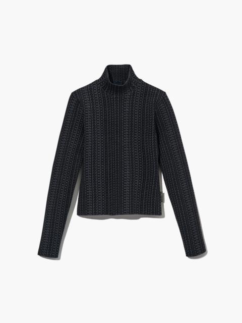 Inspired by runway grunge signature to Marc, this oversized monogram crewneck sweater is finished with distressing at the cuffs and hem. N608W10RE22 FEATURES 77% Merino Wool, 9% Acrylic, 7% Polyamide, 7% Mohair Distressing at hem, collar and cuffs Monogram flag tag label