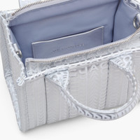 This striking version of our smallest tote bag is crafted in striking metallic silver leather. It secures with a top zip closure and is finished with the iconic namesake branding at the front. Inside, it includes two slip pockets and one card slot. Carry at the top handles or attach the removable and adjustable leather strap to wear as a crossbody. 2F3HTT048H01 FEATURES Metallic leather Top zip closure Top handle, removable and adjustable leather strap 1 card slot Faille lining Dust bag included DIMENSIONS 7in L x 4in D x 7in H 18cm L x 10cm D x 17cm H Strap 48in L x 0in D (122cm L x 1cm D) Strap Drop 23in58cm Handle Drop 3in (7cm)