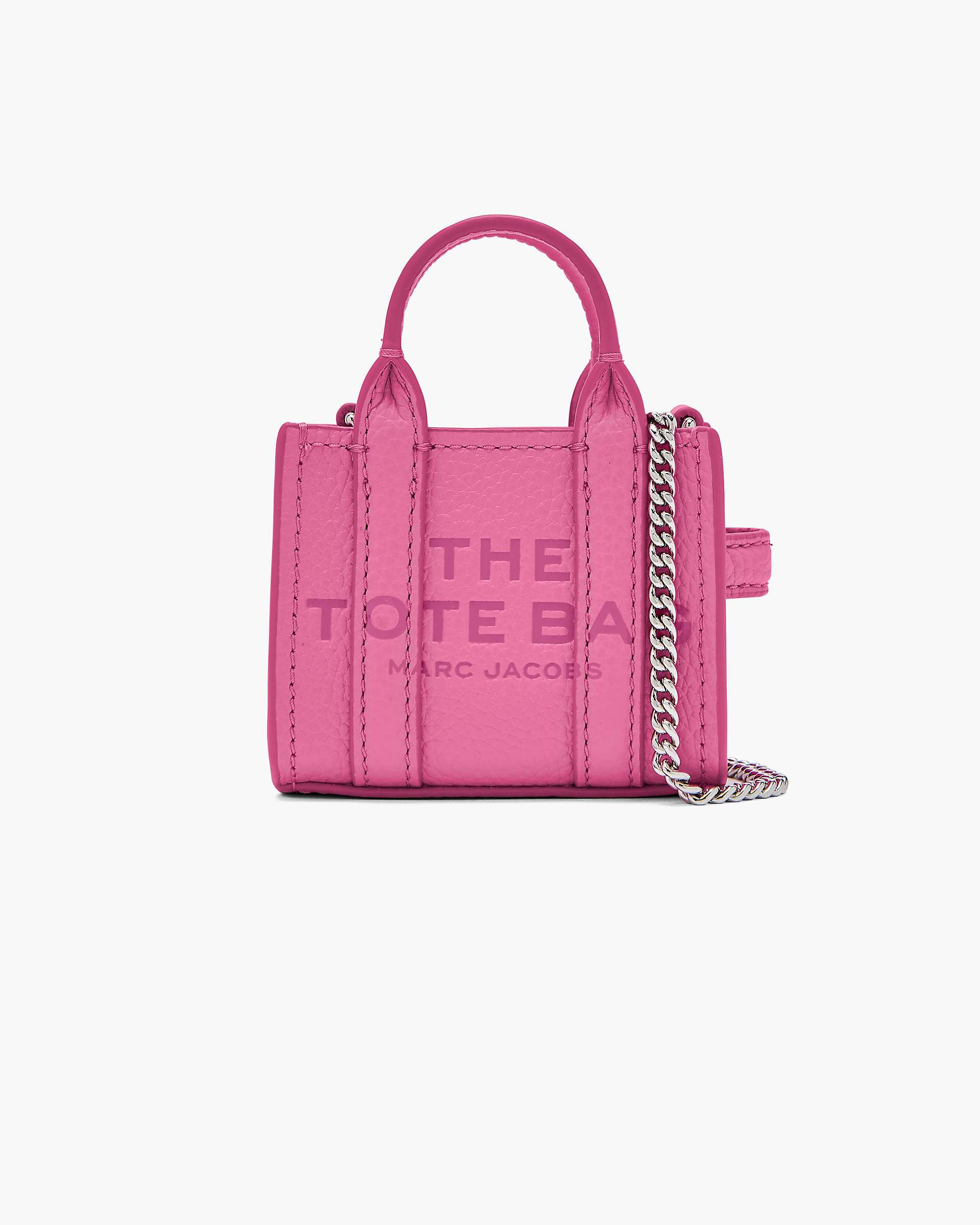 Description Crafted in premium full-grain leather for playfully sophisticated crossbody styling, the Nano Tote Crossbody embraces quintessential Marc Jacobs irreverence and proportionality. Designed with an elevated chain strap, this silhouette features a top zip closure and our signature namesake branding. A true miniaturized rendition of the original “The” Tote Bag silhouette, this Nano Tote is perfect for effortlessly stashing cash, cards, earbuds, lipstick and keys. 2S5SMN016S01 Features Full Grain Leather Top Zip Closure Removable Chain Strap Dustbag Included Dimensions 4in L x 2in D x 3in H 10cm L x 4cm D x 8cm H Handle Drop 2in (4cm)