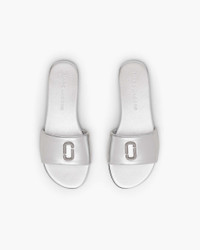 Description Crafted from smooth metallic leather, this signature Snapshot Slide shines bright with dazzling pave crystal J Marc hardware. Slim, lightweight and effortlessly chic, it’s the perfect blend of comfort and glam. 2F5FSA001F50 Features Metallic Leather Upper Mixed Material Outsole Leather Footbed Dimensions .12" (5mm) Heel Narrow fit (3" / 85mm footbed width) We recommend sizing up