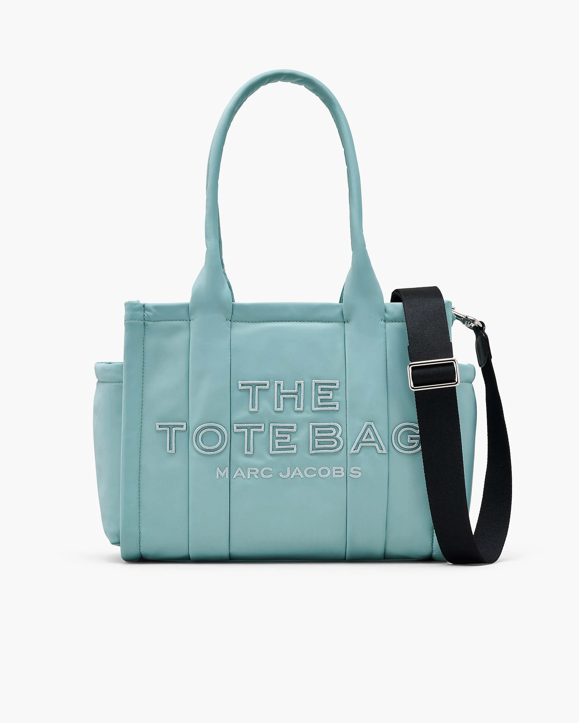Description Our iconic medium Tote Bag silhouette reimagined in puffy nylon, this sporty utility-inspired carryall features a refined top handle for high-comfort over-the-shoulder styling, an embroidered iteration of our signature namesake branding and a top zip closure. With two external side pockets, one interior slip pocket and one interior zip pocket, this ultra accommodating silhouette includes pop lining with in an interior inscription that reads, "CAUTION EXTREMELY LIGHTWEIGHT BECAUSE LIFE'S TOO SHORT FOR HEAVY BAGGAGE. Part of THE collection. 2R4HTT016H03 Features Nylon Top zip closure Top handle 2 external side pockets 1 Interior Slip Pocket, 1 Interior Zip Pocket Polyester Lining Dimensions 13in L x 6in D x 11in H 33cm L x 15cm D x 26cm H