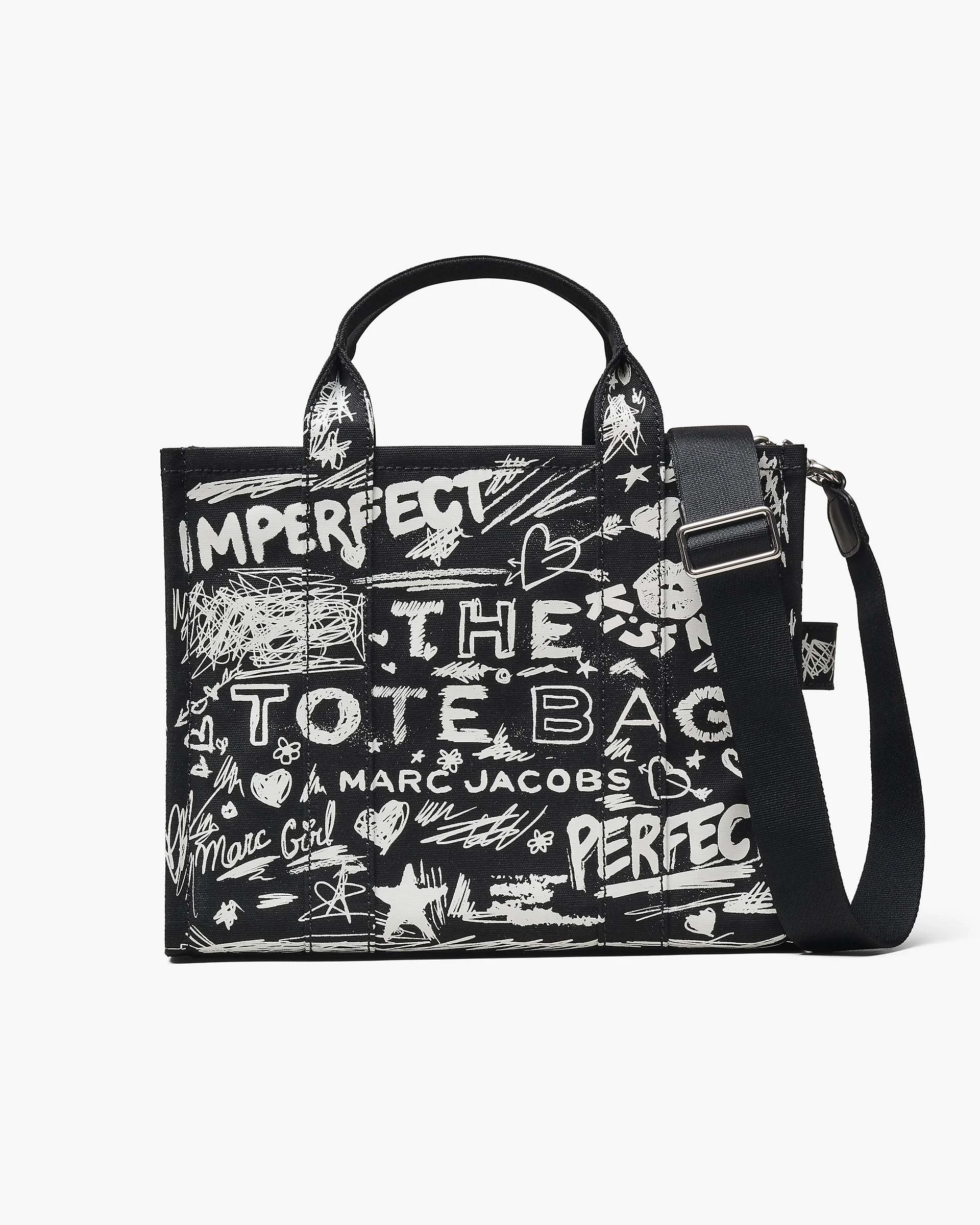 Description Our timeless tote featuring a punk-inspired, tattoo scribble print. Crafted from textural cotton canvas, this silhouette is intended to fade and relax over time for an authentically broken-in look that Marc himself loves to wear. A chunky top zip closure, one slip pocket, and the namesake branding make the canvas medium tote perfect for an errand or the office. Carry yours by the top handles or attach the adjustable, removable crossbody strap for hands-free styling. 2S6HTT015H02 Features Cotton Canvas Zip Closure Top Handle, Removable And Adjustable Webbing Strap Internal Zip Pocket, 2 Internal Slip Pockets Dust Bag Included Dimensions 13in L x 6in D x 10in H 33cm L x 15cm D x 26cm H Strap 57in L x 2in D (144cm L x 4cm D ) Strap Drop 27in 69cm Handle Drop 13in 34cm