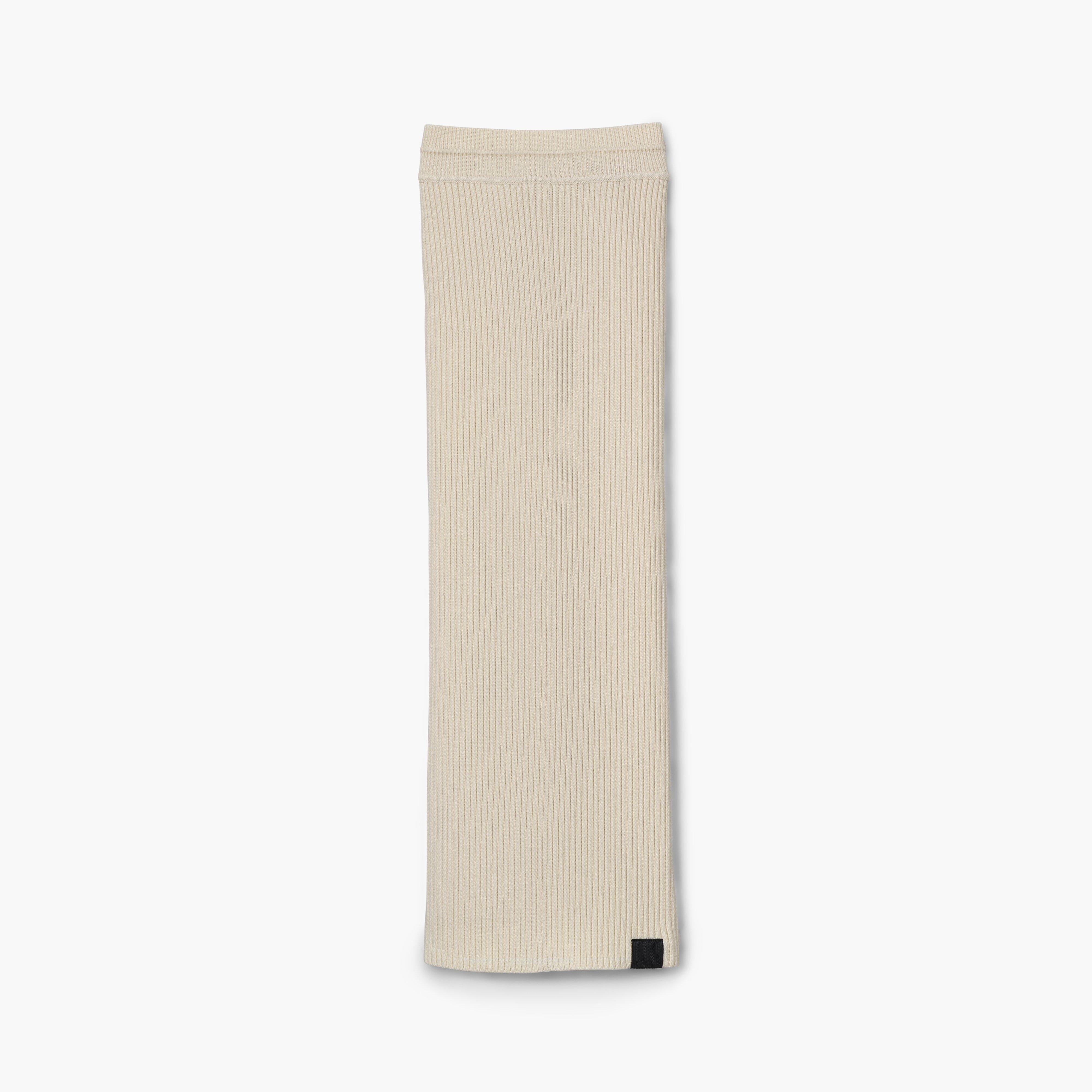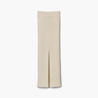 Streamlined and sleek, this ribbed midi skirt is made from luxuriously soft merino wool and finished with our tonal barcode patch at back. Style with the season's separates to complete the look. 2R3RBT001K02 FEATURES 100% merino wool Rib trim waistband Tonal leather barcode patch Exposed hand linking seams at center front and back High slit at center back