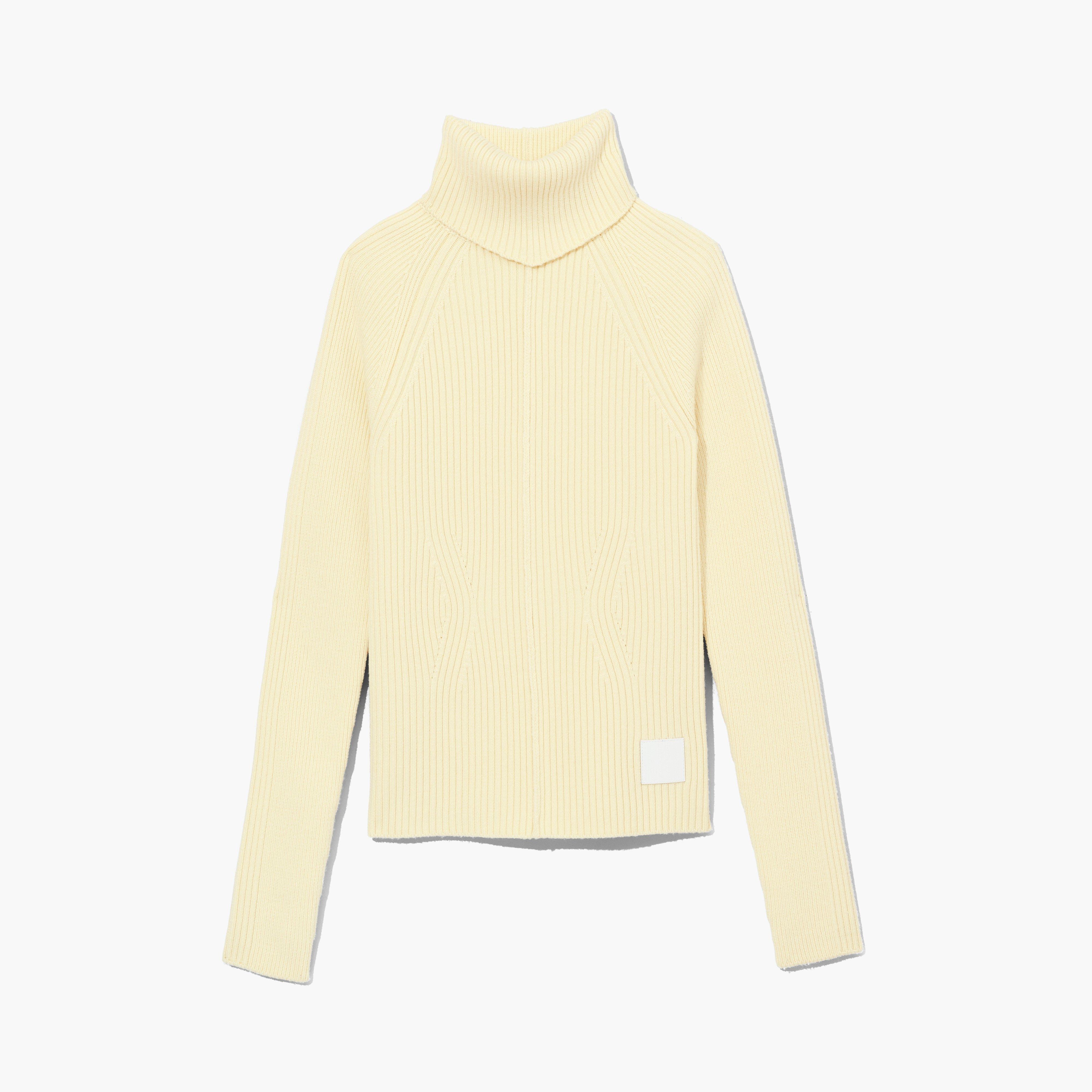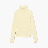 Taking cues from the ribbed turtleneck on the runway with a just-right fit cut from ultrasoft luxurious knit fabric. Decorated with a tonal white leather branded patch for an elevated finish. N604W07RE22 FEATURES 96% Wool, 3% Nylon, 1% Spandex Fully fashioned seams Sculptural turtleneck Barcode monogram leather patch