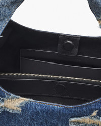 Our iconic runway-to-reality silhouette reimagined in artfully distressed denim. Minimalistic in design, this covetable carryall features a spacious removable zip pouch and internal zip pocket for all your essentials, securing effortlessly with a magnetic closure. Slouchy and lightweight, this elevated shoulder bag is quintessential style and function. 2F4HSH014H05 FEATURES Cotton denim Magnetic closure Top handle 1 internal removable zip pouch, 1 internal slip pocket Twill lining Dust bag included DIMENSIONS 15in L x 8in D x 9in H 38cm L x 21cm D x 23cm H Handle Drop 11in (28cm) Handle Drop 12in (30cm)