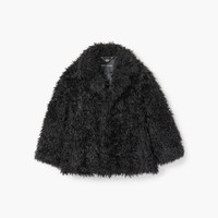 A cropped and shrunken silhouette, this whimsically sophisticated, textural statement jacket features a shaggy faux fur fabrication, interior snap closures and abbreviated sleeve lengths for a classically posh silhouette. 2F4RJC014W11 FEATURES 83% acrylic, 17% polyester Polyfill lining
