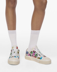 Description A low-top sneaker crafted in durable premium canvas, printed with our playful seasonal sticker motif, celebrating iconic Marc Jacobs motifs. An essential lace-up silhouette, this covetable shoe features a textured monogram-stamped rubber outsole, dimensional namesake branding and our signature "Daisy Yellow" pop sole. Part of THE™ collection. 2S5FSN001F20 Features Canvas upper Eva + Textile Footbed Rubber sole Lace-up closure Sizing 1.3" (35mm) cupsole 10mm pitch Regular fit