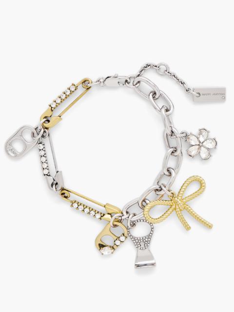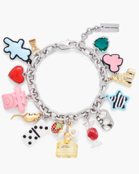 Description Discover quintessential Marc Jacobs accessorizing with the covetable Sticker Charm Bracelet, celebrating our seasonal Sticker motif on a classic chain link silhouette. Featuring sticker-inspired charm iterations of classic and archival Marc Jacobs iconography, this playful everday piece comes with an adjustable lobster clasp closure for a personalized fit. 2S5JBR001J85 Features Plated brass Resin with glass stones 100% Nickel free Lobster clasp with extender chain Shipped in our signature yellow gift box with custom monogram dust bag Dimensions Base length: 7" (18cm) Extender: 1" (3cm) Charms: 12-25mm