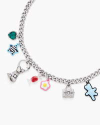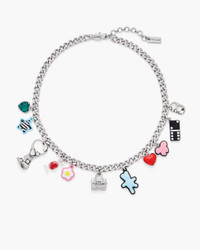 Description Discover quintessential Marc Jacobs accessorizing with the covetable Sticker Charm Necklace, celebrating our seasonal Sticker motif on a classic chain link silhouette. Featuring sticker-inspired charm iterations of classic and archival Marc Jacobs iconography, this playfully chic style is designed with an adjustable lobster clasp closure for a personalized fit. 2S5JNC001J62 Features Plated brass Resin with glass stones 100% Nickel free Lobster clasp with extender chain Shipped in our signature yellow gift box with custom monogram dust bag Dimensions Shorter length: 41cm Longer length: 46cm Charms: 12-18mm