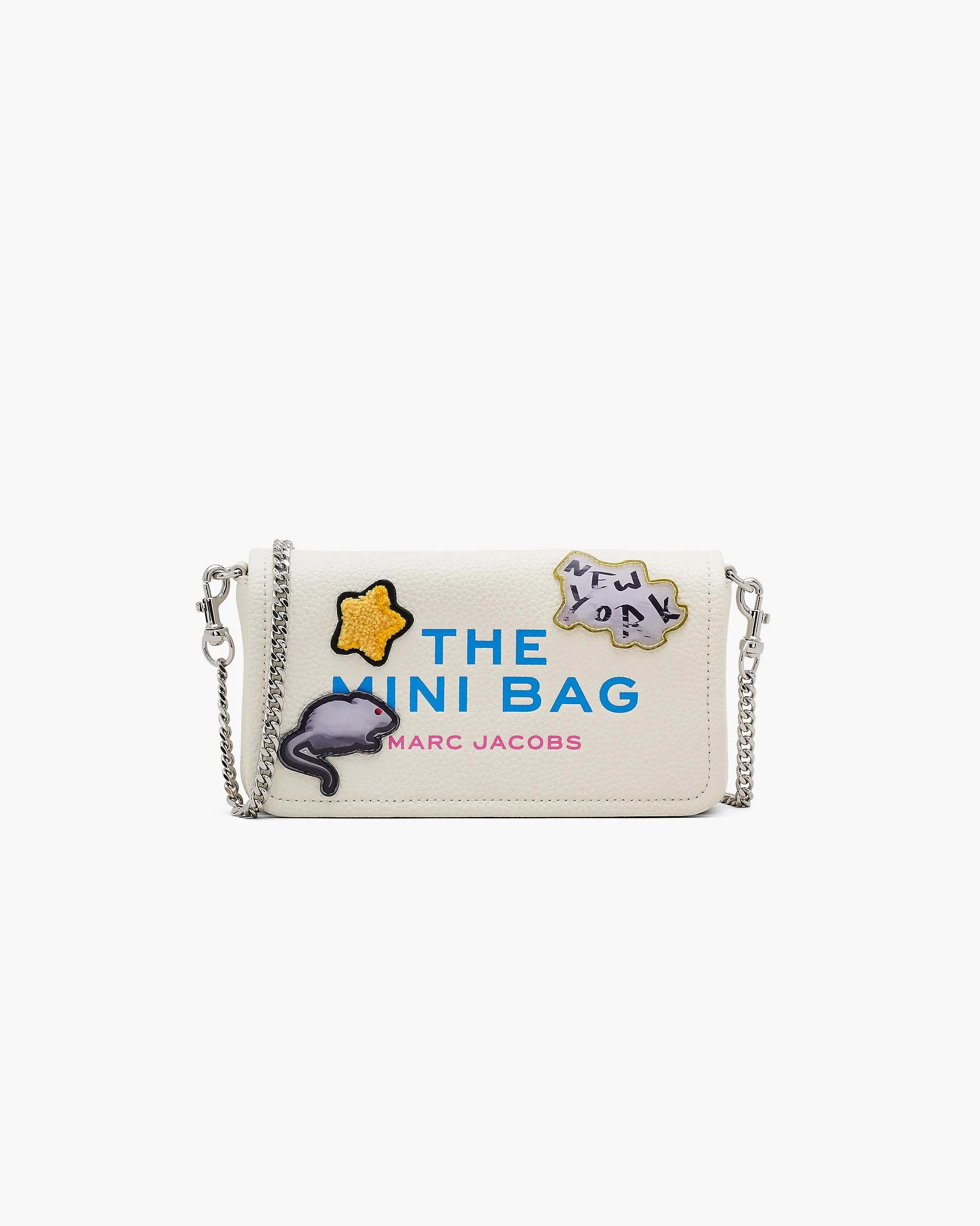Description The bestselling Mini Bag reimagined in our seasonal Sticker Patch motif, with textural chenille patches for a dimensional finish. Featuring the iconic internal inscription, "My Other Bag is The Tote Bag" and crafted in luxurious full grain leather, this high-style everyday essential includes an effortless magnetic closure, our signature debossed namesake branding and eight internal card slots for optimized organization. Perfectly sized for all your essentials, carry as a clutch or style with the removable adjustable webbing strap for playfully elevated crossbody styling. 2S5SMN010S01 Features Full Grain Leather Magnetic Closure 1 slip pocket, 8 card slots Removable wristlet strap Twill Lining Dustbag Included Dimensions 8in L x 2in D x 5in H 20cm L x 5cm D x 12cm H Strap 57in L x 1in D (144cm L x 4cm D) Strap Drop 27in 70cm