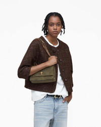 Description Downtown cool factor meets refined uptown details. Luxuriously crafted in croc-embossed Italian suede with a puffed texture, this freshly debuted instant-icon features a refined J Marc turn-lock closure, our handle-adorning signature Dual hardware and our iconically bold Dual silhouette. With a pull-through chain strap with leather guard for over the shoulder or crossbody styling, this true convertible essential can be effortlessly worn two ways. 2S6HSH027H01 Features Crocodile-Embossed Italian Suede Turnlock Closure Pull-Through Chain Strap Internal Zip Pocket Twill Lining Dust Bag Included Dimensions 9in L x 3in D x 6in H 24cm L x 8cm D x 15cm H Strap 26in L x 1in D (65cm L x 2cm D ) Strap Drop 12in 30cm