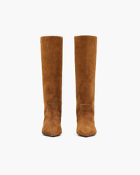 Description Soft structure, sharp detail. Crafted in rich suede, this mid-calf boot balances a relaxed silhouette with a refined edge. The kitten heel pairs ease with intention, offering elevated style with all-day wearability. The J Marc hardware at the heel punctuates the boot with a flash of contrast and signature identity. 2F5FBO001F45 Features Suede Upper Leather Sole Synthetic Footbed 45mm Heel Height 45mm Pitch