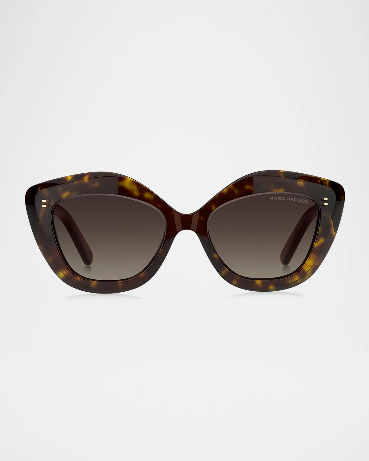 - Marc Jacobs cat-eye sunglasses in acetate - Eye/bridge/temple (in mm): 52-18-140 - Gradient lenses - Saddle nose bridge - Thick, tapered arms - "The Sunglasses" printed at the temples - Acetate - Wipe clean - 100% UVA/UVB protection - Imported - Proposition 65 warning for California residents