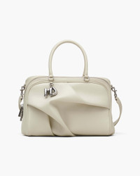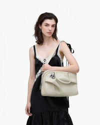 Description Straight from the 2025 runway, our latest bag is available to the public for the first time ever. Crafted from supple lamb leather, this bag has a soft and slouchy silhouette that features an abstract, sculptural 3D wave detail on the front. Balloon inspired MJ charms hang near the two top handles. A removable leather shoulder strap offers a second way to wear. A top zipper keeps everything inside while an internal zip pocket offers extra safekeeping. 2P5HSC041H02 Features Lamb Leather Zip Closure Top Handle; Removable Leather Strap Internal Zip Pocket Twill Lining Dust Bag Included Dimensions 13in L x 7in D x 9in H 33cm L x 19cm D x 24cm H Strap 32in L x 1in D (82cm L x 3cm D ) Strap Drop 14in 36cm Handle Drop 17in 42cm
