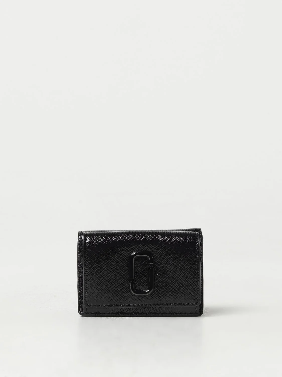 DESCRIPTION - Logo: Marc Jacobs Double J - Lining: With horizontal banknote pocket - Pockets: Patch pocket - Shape: Rectangular - Closure: With flap and press stud - Model: Tri-fold - Materials: Saffiano leather - Pattern: Monogram DETAILS AND CARE Composition 100% Split Cow Leather w/ Polyurethane Coatin SIZE AND FIT Sizes Designer code: 2F3SMP049S07 001 Giglio Code: F12817 Designer: Marc Jacobs Collection: Marc Jacobs Woman Category: Accessories Marc Jacobs