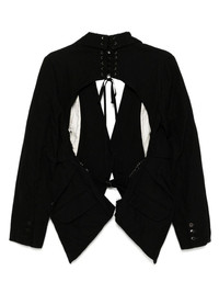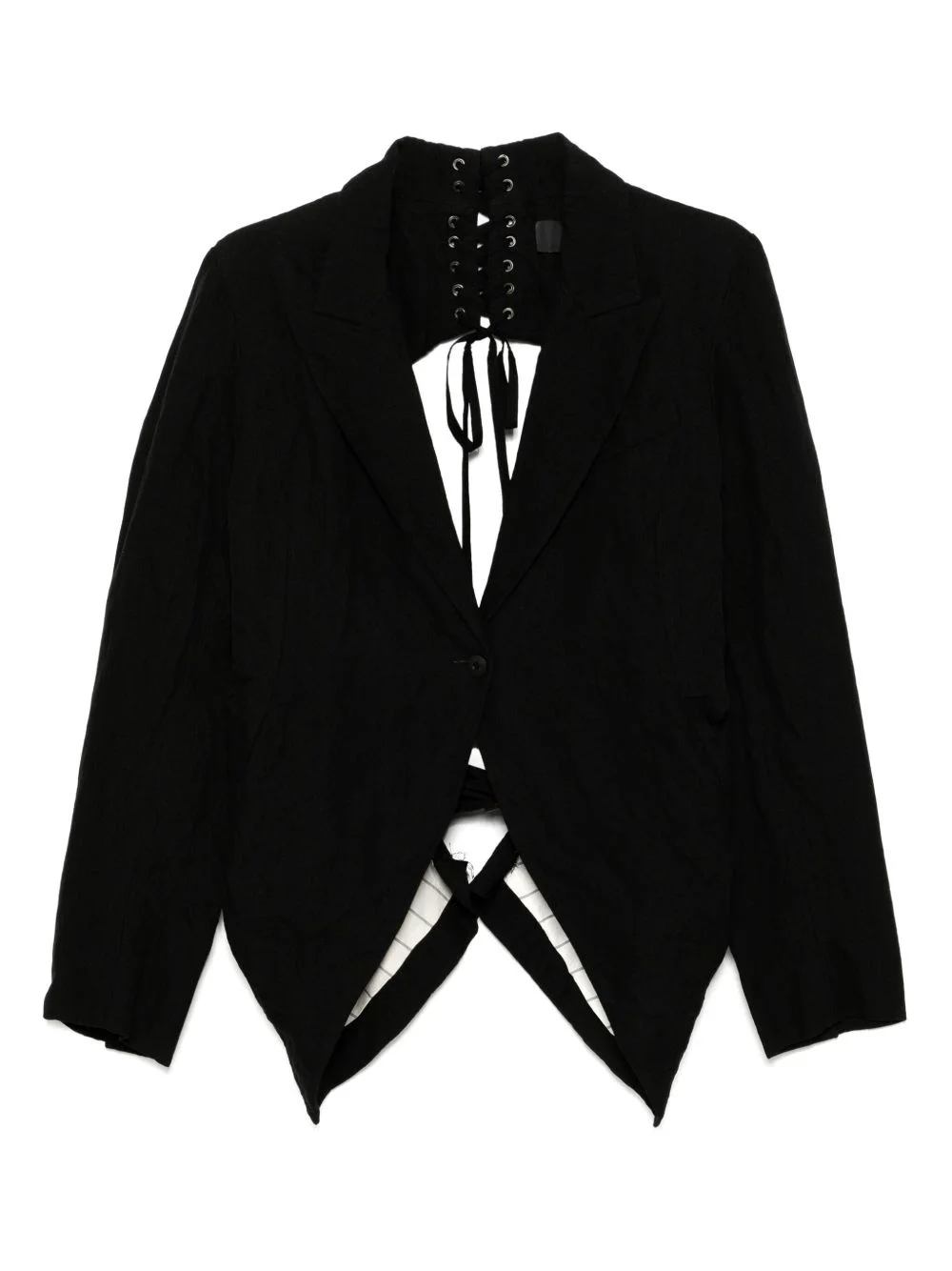 cut-out detail jacket Highlights - Black - Front button fastening - Notched lapels - Two front flap pockets - Asymmetric hem Made in France Composition Cotton 79%, Linen/Flax 15%, Metal (Other) 6%