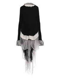 deconstructed jacket Highlights - Black - Front button fastening - Buttoned cuffs - High-low hem - Lace panelling Made in France Composition Polyamide 56%, Silk 36%, Elastane 8%