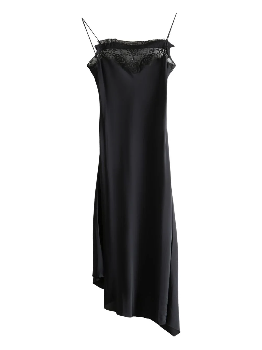 laced asymmetric midi dress Highlights - Black - Silk - Lace detail - Spaghetti straps - Asymmetric hem - Midi length Made in France Composition Silk 100% Washing instructions Read Manufacturer Guidelines