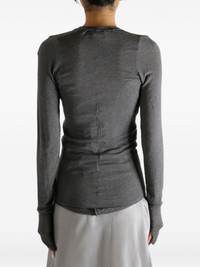 long-sleeve top Highlights - Dark grey - Crew neck - Long sleeves - Thumb holes - Raw hem Made in France Composition Viscose 75%, Wool 19%, Elastane 6% Washing instructions Read Manufacturer Guidelines
