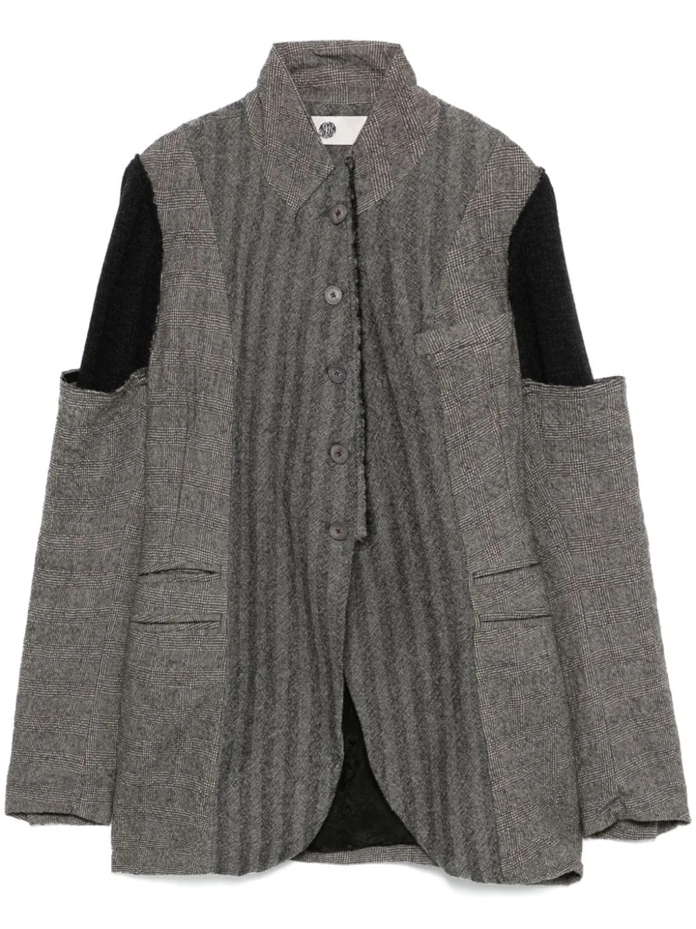 patchwork blazer Highlights - Grey - Wool - Patchwork design - Front button fastening - Mix patterns - Peak lapels - Long sleeves - Buttoned cuffs - Chest welt pocket - Two side inset pockets - Jacquard lining Made in France Composition Wool 100% SIZE & FIT Model measurements Height 5 ft 10 in(1.78 m) Bust/Chest 33.46 in(85 cm) Hips 36.22 in(92 cm) Waist 23.22 in(59 cm) FittingInformation Designed for a slim fit that sits just away from the body offering a close yet comfortable fit Made from a midweight non-stretch fabric