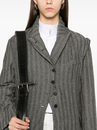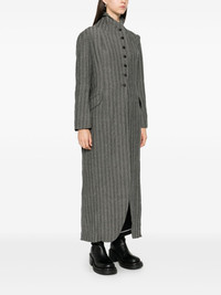 striped coat Highlights - Grey - Wool - Panelled design - Vertical stripe pattern - Mini chevron pattern - Front button fastening - Stand-up collar - Long sleeves - Chest welt pocket - Dart detailing - Two front flap pockets - Floral-pattern lining - Straight hem Made in France Composition Wool 100% SIZE & FIT Model measurements Height 5 ft 10 in(1.78 m) Bust/Chest 33.85 in(86 cm) Hips 36.61 in(93 cm) Waist 26.77 in(68 cm) FittingInformation Designed to be unstructured, offering a loose fit throughout Made from a midweight non-stretch fabric