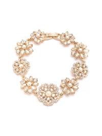 The Gold Fresh Floral Bracelet alternates between geometric gold flowers and crystal-outlined five petal flowers with a faux pearl at the center, strung together by gold hardware. The dainty bracelet is gold plated with a gold tone and measures 7.25 inches in length. Details Pictured in gold 7.25 in Style ID: 16B00090