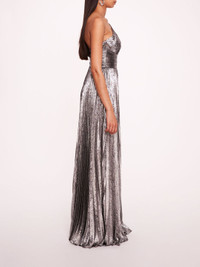 METALLIC LAME PLEATED GOWN
