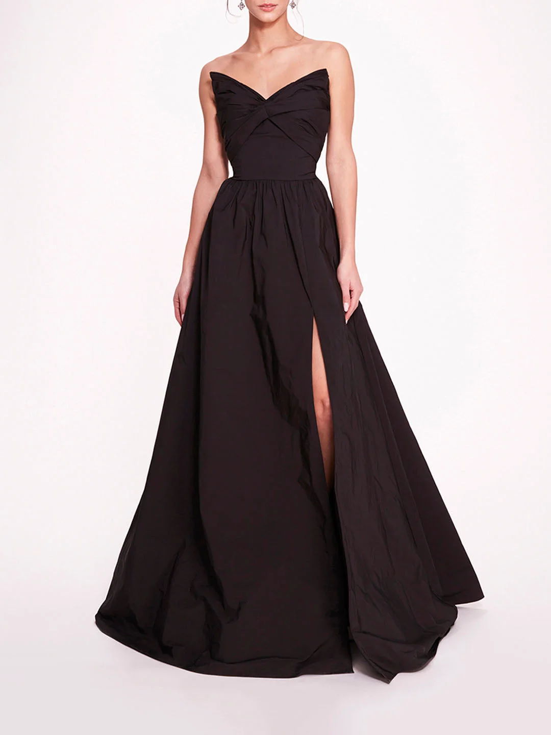 Make a statement in the Pleated Taffeta Gown, a blend of classic sophistication and modern allure. Crafted from taffeta, this strapless a-line silhouette features a beautifully pleated bodice that accentuates the figure, while a daring slit adds a touch of drama. Sizing and Fit • Silhouettes are designed to fit true to size, following a classic American fit. • Clients familiar with European sizing may wish to consider sizing down for a closer fit. • Many styles are crafted from exquisite woven fabrics, often adorned with delicate embellishments, and are intended to maintain their structure without stretch unless otherwise specified. • For bespoke sizing guidance or personalized assistance, our concierge team is delighted to help at concierge@marchesafashion.com.