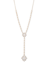 The Pretty Pearl Y Necklace features a pattern of petite gold links and faux pearls, complete with geometric floral charms. The statement gold necklace is featured in a gold tone with gold hardware and measures 16 inches in length. Details Pictured in gold 16 in Style ID: 16N00107