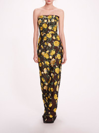Indulge in romantic elegance with the Roses Tulle Gown. Crafted from delicate tulle adorned with floral embroidery, this sleeveless column gown captures the essence of grace and femininity.