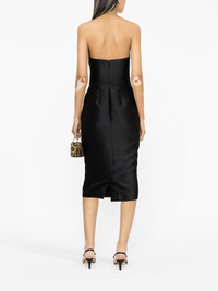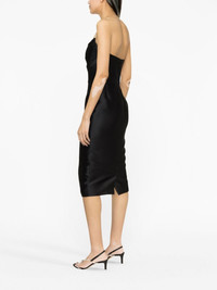 strapless satin midi dress Highlights - Black - Satin finish - Draped detailing - Concealed rear zip fastening - Below-knee length Made in United States Composition Outer: Nylon 78%, Polyester 70%, Silk 30%, Spandex/Elastane 22% Lining: Polyester 100% SIZE & FIT Model measurements Height 5 ft 10 in(1.77 m) Bust/Chest 32.67 in(83 cm) Hips 35.43 in(90 cm) Waist 23.62 in(60 cm)