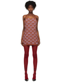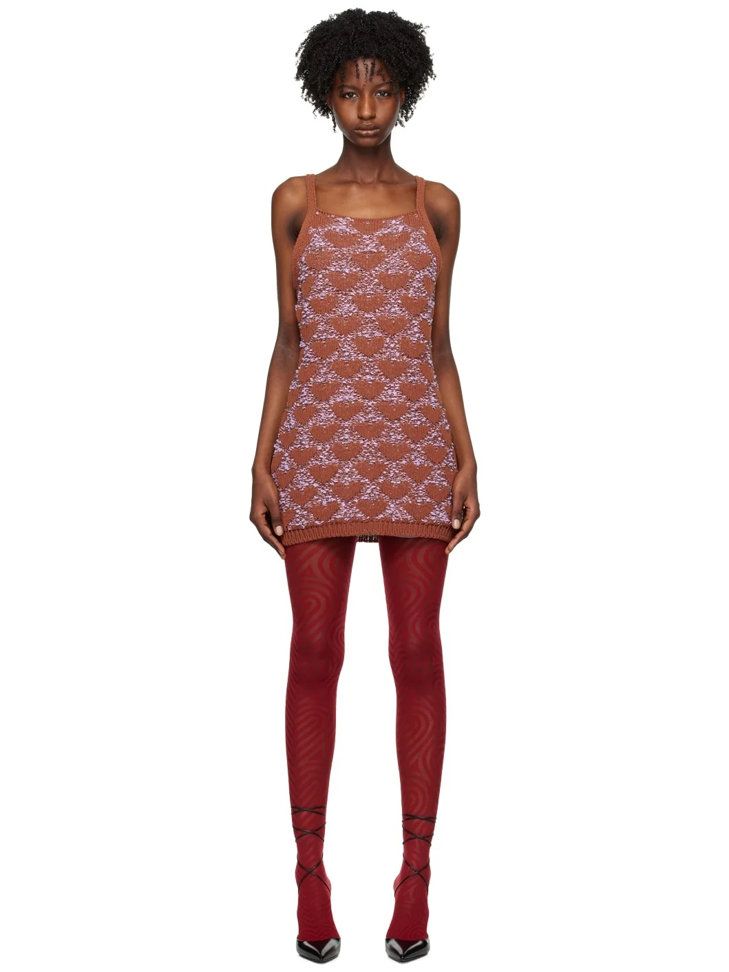 Knit cotton- and linen-blend dress. Jacquard boucle pattern throughout. · Rib knit round neck and hem · Fixed shoulder straps Supplier color: Brown/Liliac 50% cotton, 25% linen, 18% polyester, 7% polyamide. Made in Italy 231761F052006