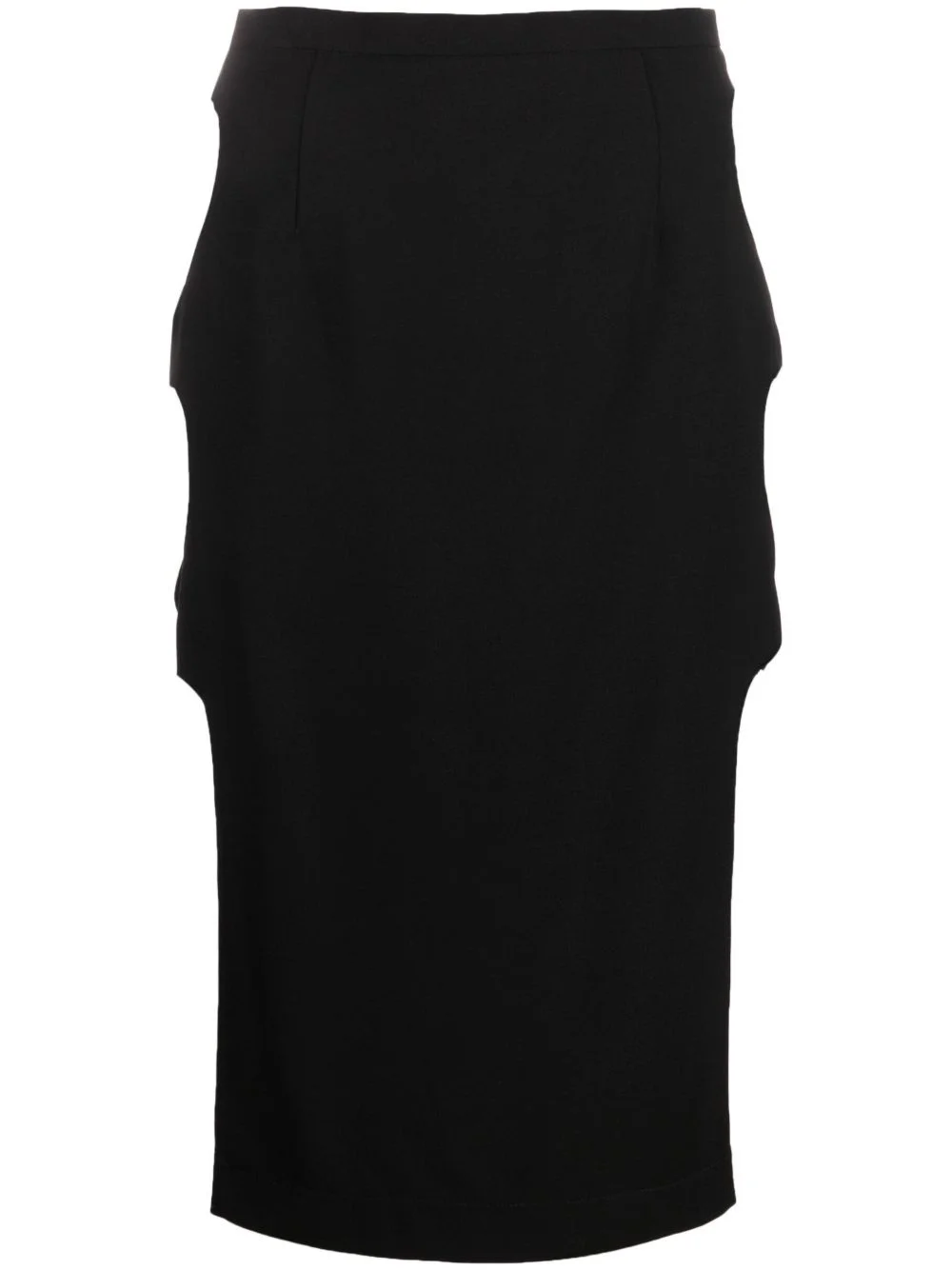 cut-out midi skirt Highlights - Black - Cut-out detailing - Rear zip fastening - Side slits - Straight hem Made in Italy Composition Outer: Viscose 94%, Elastane 6%