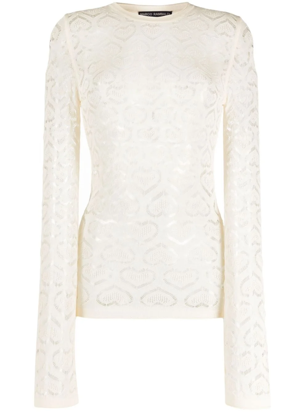 heart-motif long-sleeved top Highlights - Ivory white - Stretch-design - Heart motif - All-over logo embroidery - Crew neck - Long sleeves - Straight hem Made in Italy Composition Viscose 88%, Polyamide 12%