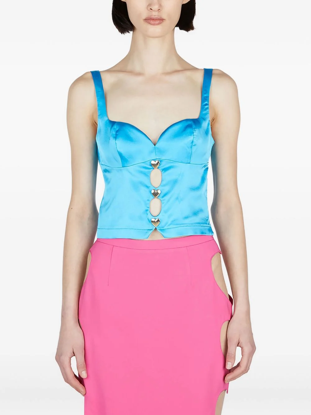 cut-out detailing top Highlights - Sky blue - Concealed side zip fastening - Sweetheart neck - Sleeveless Made in Italy Composition Viscose 93%, Elastane 7% Washing instructions Machine Wash