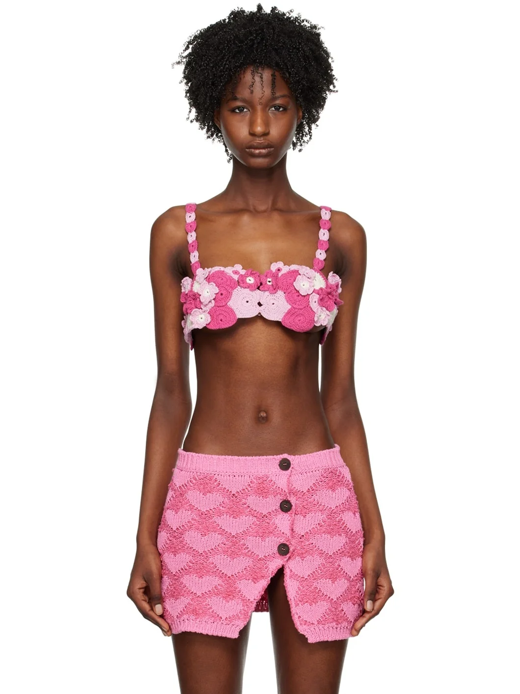 Hand-crocheted cotton- and linen-blend bra. · Sweetheart neck · Adjustable shoulder straps · Self-tie fastening at back · Unlined Supplier color: Fuchsia 70% cotton, 25% linen, 5% polyamide. Made in Italy 231761F111010