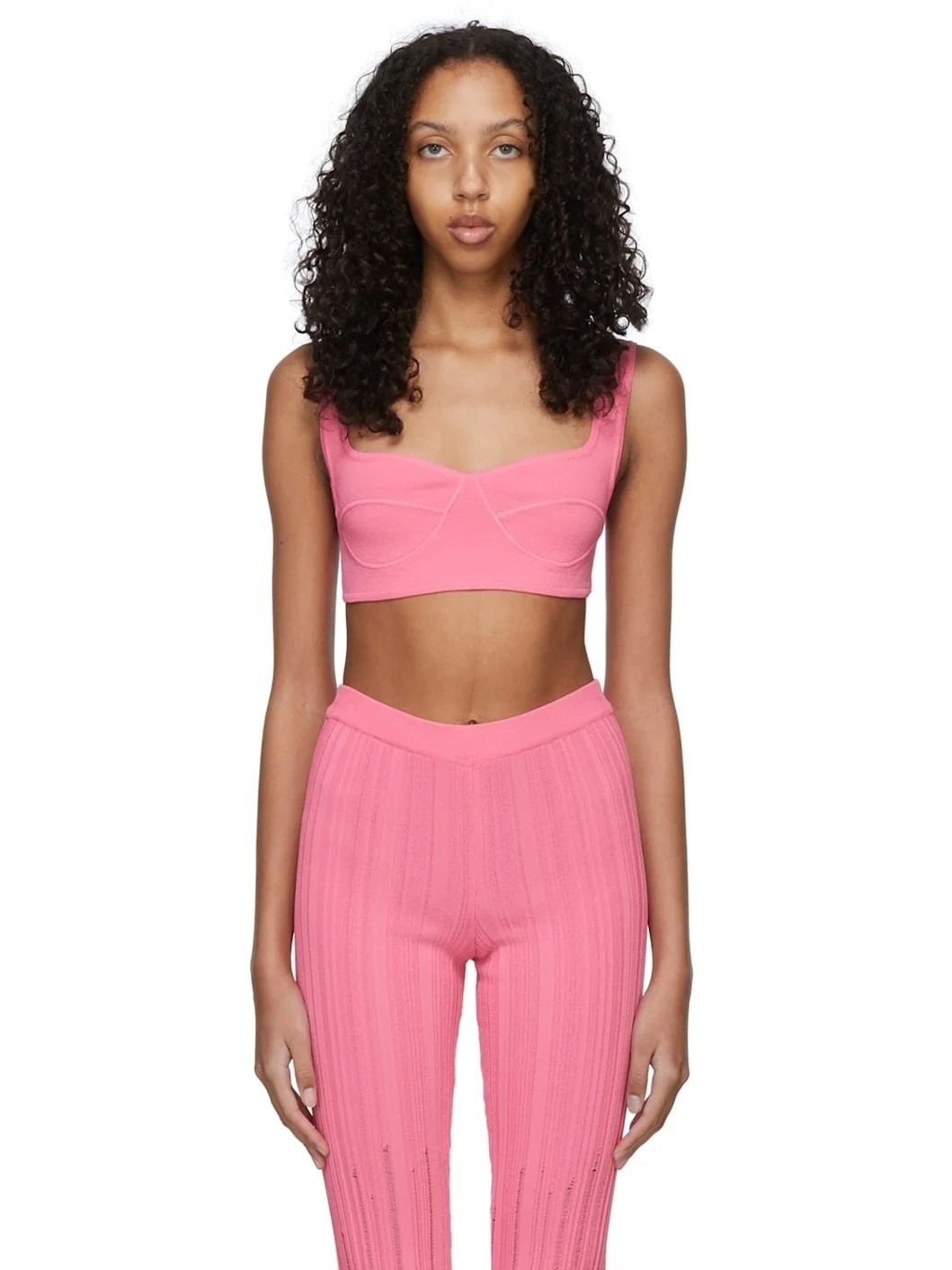 Knit viscose and nylon-blend bra. Square neck. Supplier color: Fuxia 65% viscose, 35% polyamide. Made in Italy 221761F073002