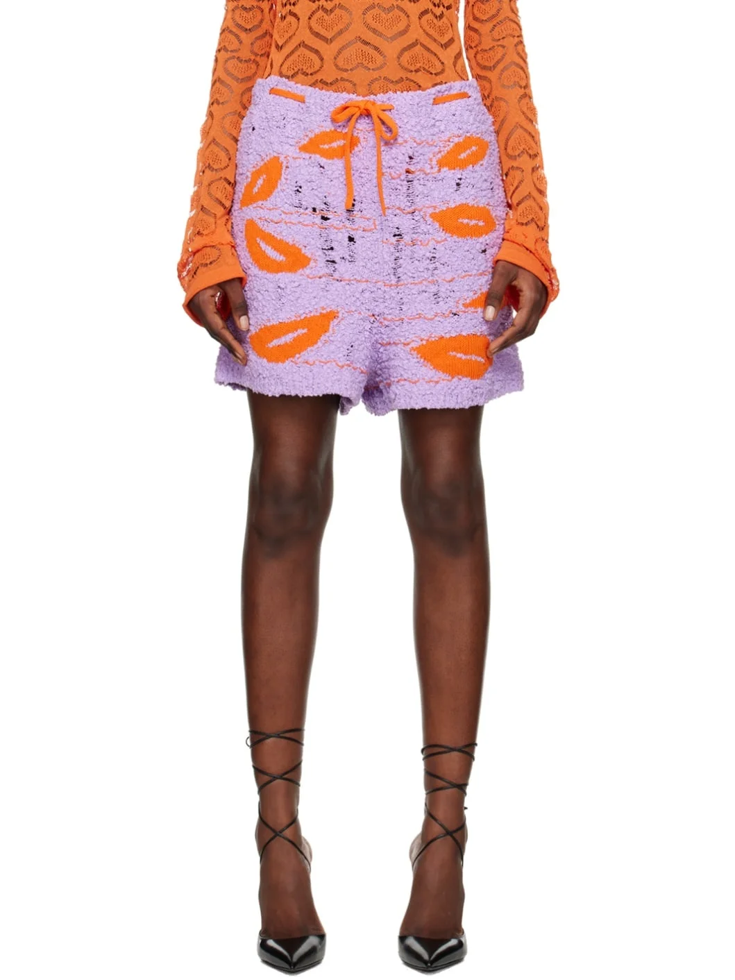 Cotton-blend boucle short. · Intarsia graphics throughout · Drawstring at waistband Supplier color: Liliac 78% cotton, 15% polyamide, 7% polyester. Made in Italy 231761F088002