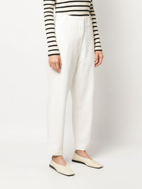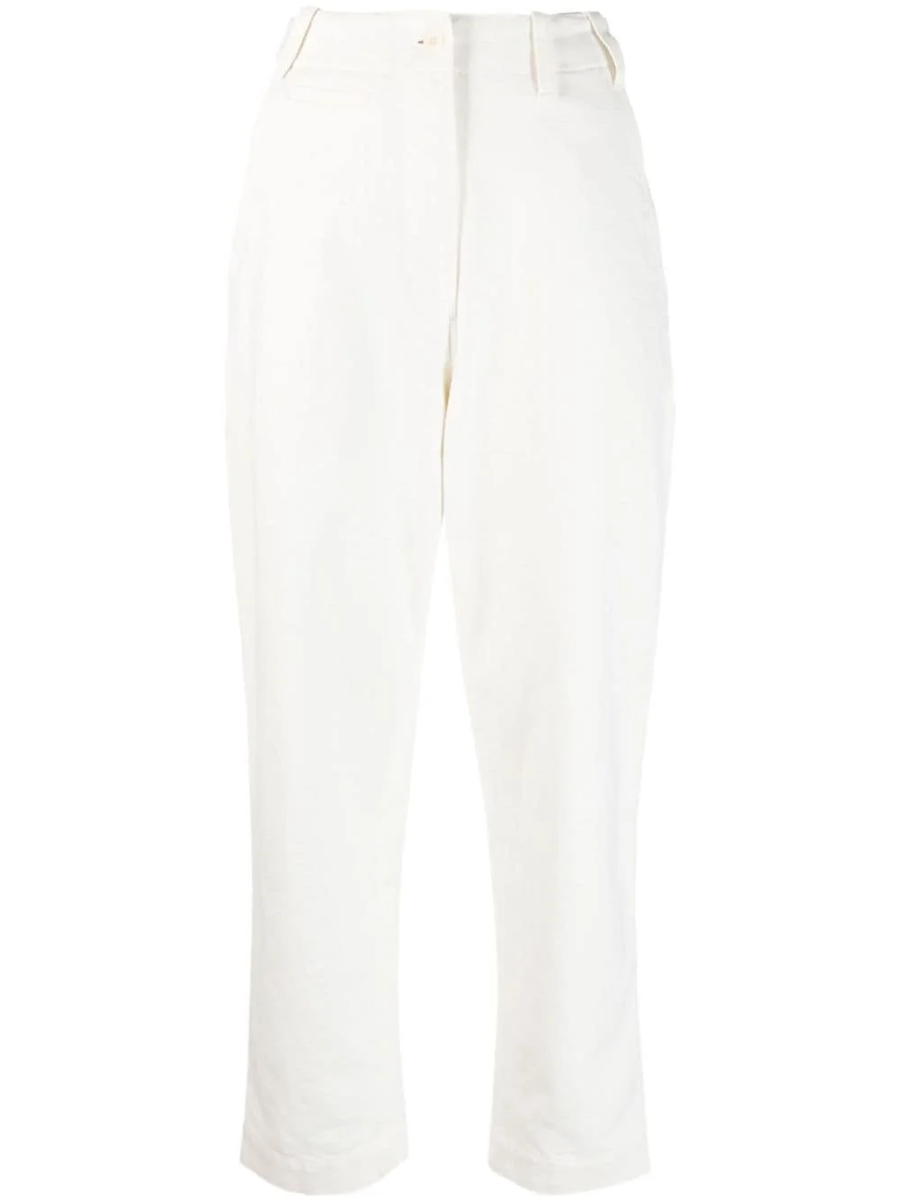 high-waisted tapered trousers Highlights - Off-white - Cotton-linen blend - High-waisted - Belt loops - Tapered leg - Concealed fly and button fastening - Turn-up hem - Classic five pockets Imported Composition Linen/Flax 55%, Cotton 45% SIZE & FIT Model measurements Height 5 ft 9 in(1.76 m) Bust/Chest 33.07 in(84 cm) Hips 34.64 in(88 cm) Waist 25.59 in(65 cm)