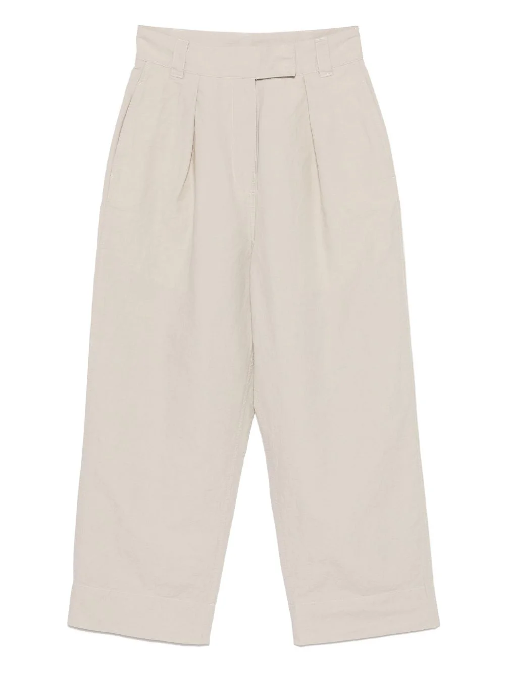 pleated cropped trousers Highlights - Almond beige - Concealed front button, hook and zip fastening - Two side inset pockets - Two rear patch pockets - Straight leg Imported Composition Cotton 73%, Linen/Flax 27%