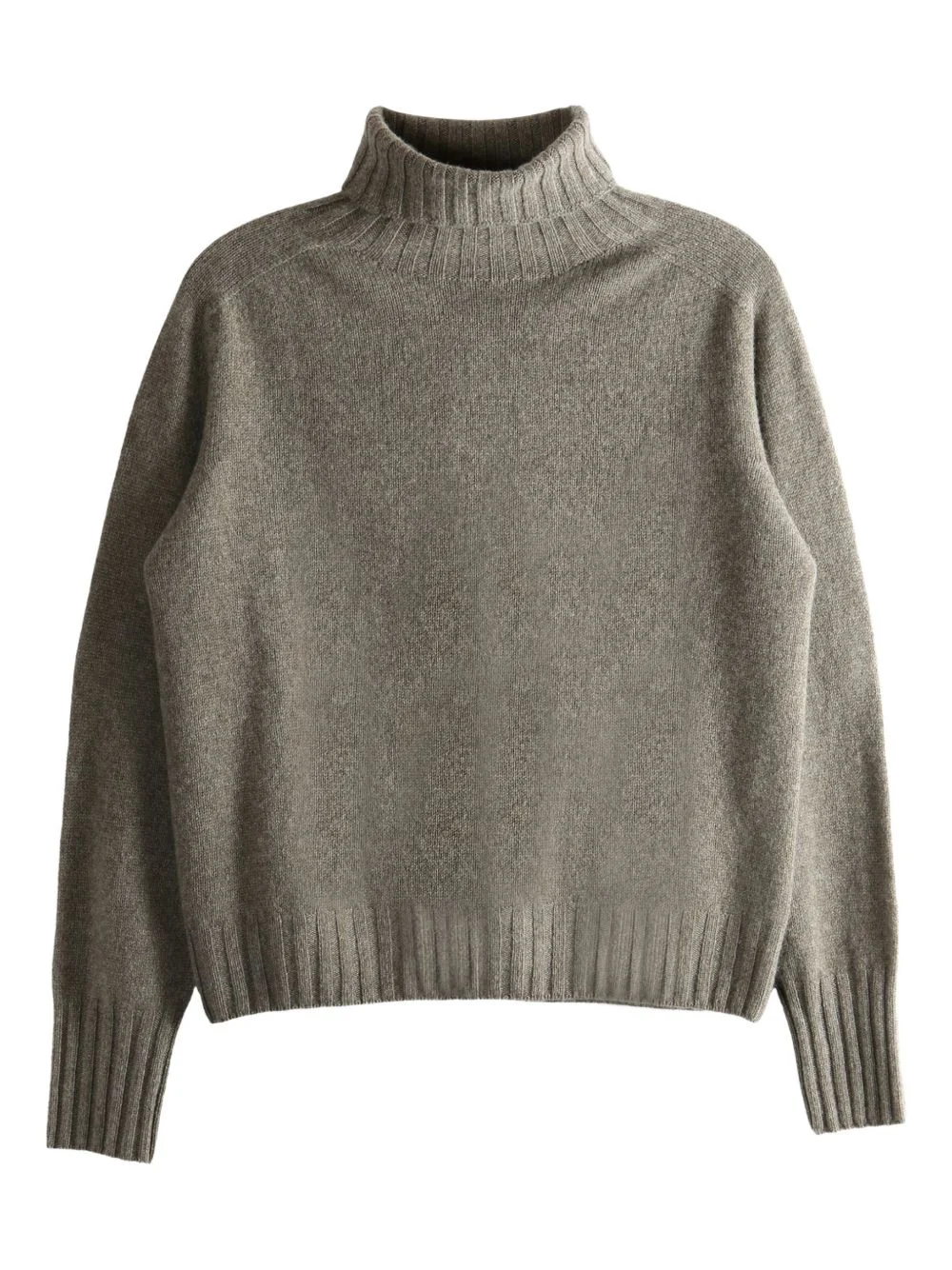 roll-neck knitted top Highlights - Natural melange - Roll neck - Long sleeves - Ribbed hem - Ribbed cuffs - Knitted Imported Composition Cashmere 100% Washing instructions Read Manufacturer Guidelines