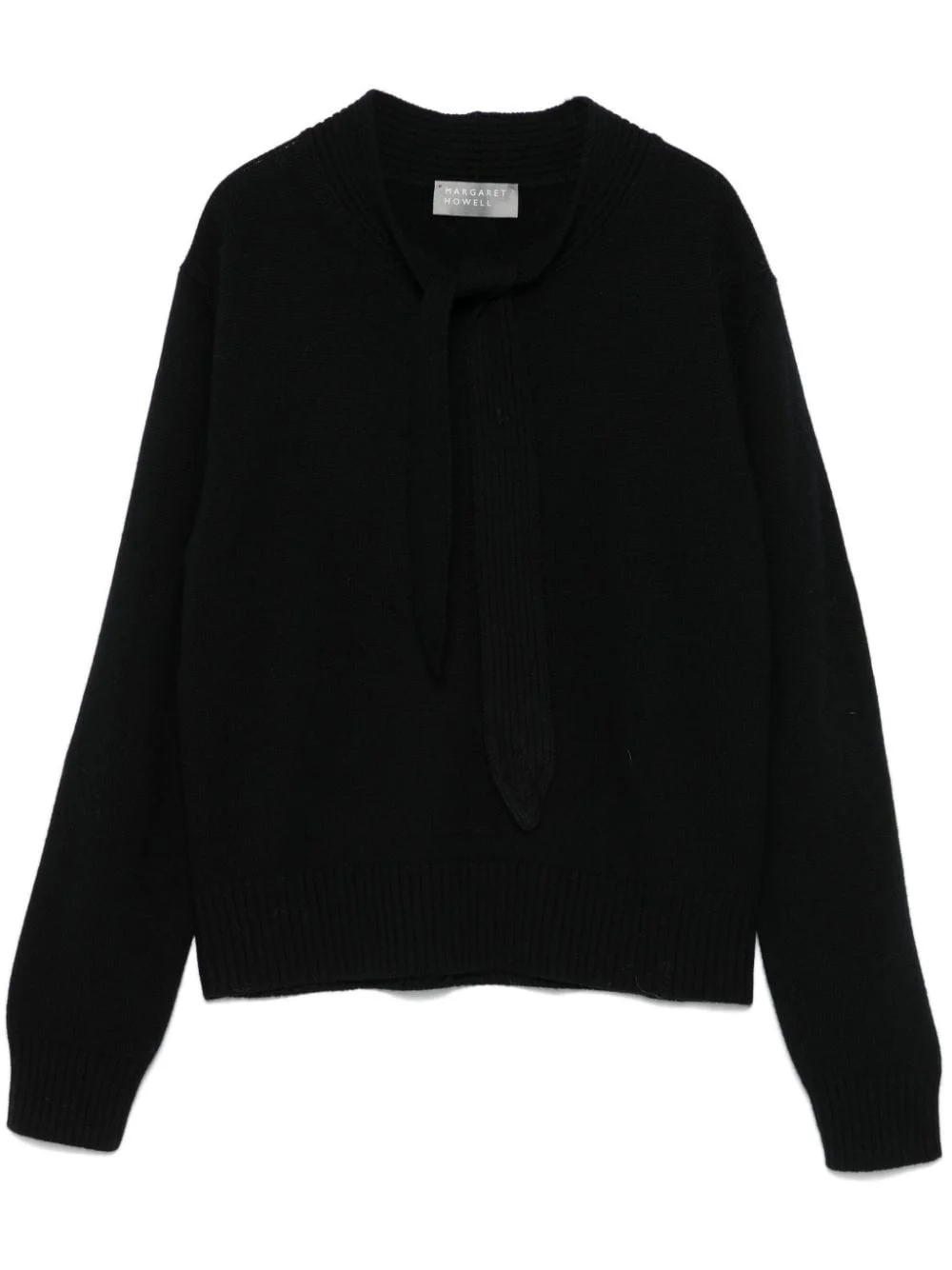 tie-neck sweater Highlights - Black - Lambs wool - Marl knit - Ribbed tie neck - Long sleeves - Ribbed cuffs and hem - Straight hem Made in Italy Composition Lambs Wool 100% SIZE & FIT Model measurements Height 5 ft 9 in(1.75 m) Bust/Chest 31.88 in(81 cm) Hips 34.64 in(88 cm) Waist 24.01 in(61 cm) FittingInformation Designed for a relaxed fit, this piece allows for comfort and movement when worn The ribbed hem offers a close, comfortable fit Made with a midweight knit, this piece offers some stretch