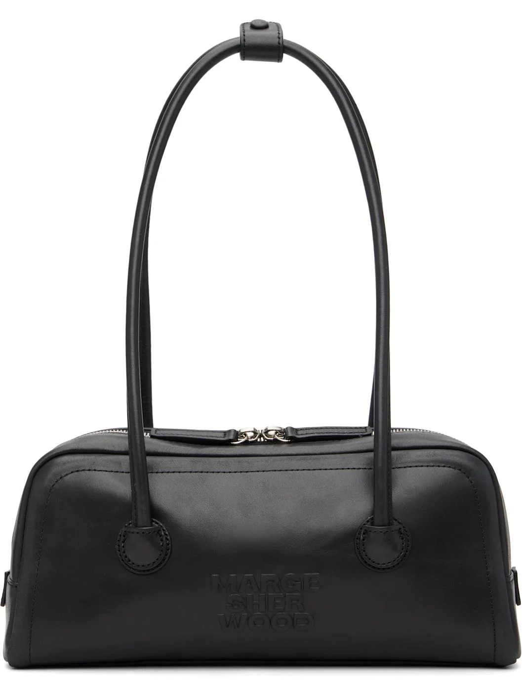 Grained leather shoulder bag. · Rolled shoulder straps with tab · Logo embossed at face · Zip closure · Zip and patch pockets at interior · Logo-woven twill lining · H6" x W11.5" x D3" Supplier color: Black Pull-Up Leather. Made in South Korea 261369F048040