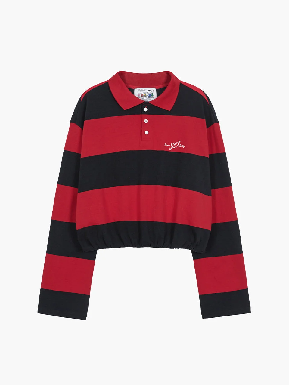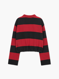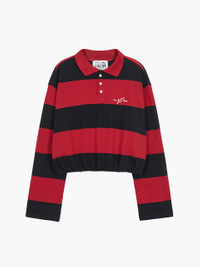 600083191RED001 / MW268-TS06-RD/00/RED - Wide horizontal stripe pattern in red and black - Classic polo collar - Three-button front placket - Long sleeves with striped cuffs - Cinched hem with elastic gathering - Embroidered logo detail on chest - Cotton blend construction - Relaxed cropped fit The MARGESHERWOOD Linus Balloon Stripe Polo Shirt delivers contemporary streetwear with bold horizontal color-blocking and classic polo construction. Crafted from comfortable cotton blend in striking red and black wide stripes, featuring a traditional collar and three-button placket. The relaxed fit with cinched hem creates a modern silhouette that elevates casual styling.
