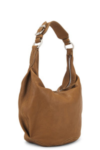 - Leather exterior with textile lining - Made in Korea - Dual top zipper closure - One main compartment - Integrated shoulder strap with buckled design and silver-tone hardware - Measures approx 8" W x 7.5" H x 5.5" D Shoulder strap with a 8.25" drop - Revolve Style No. MGES-WY6 - Manufacturer Style No. EE043341